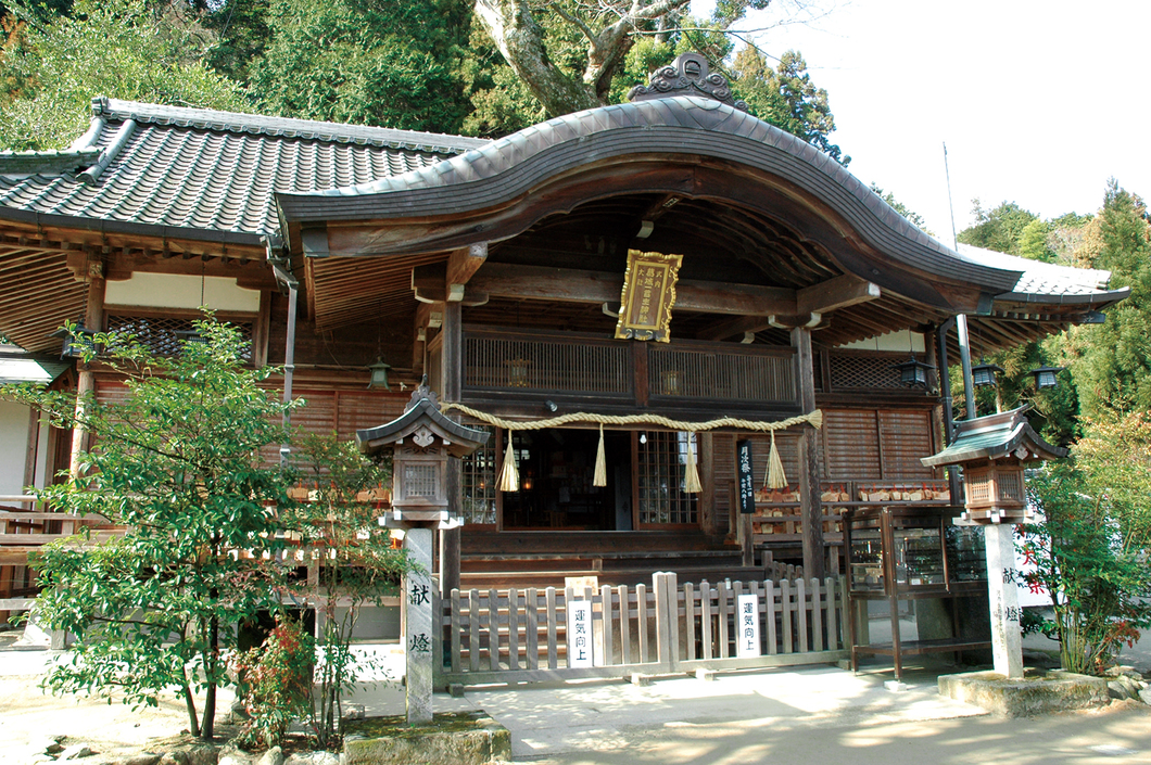 南北朝時代の建築で「日本書紀」にも記されている朝鮮半島の新羅から陶製技術を伝えた天日槍(あめのひぼこ)を祀る神社。本殿は三間社流造りの、こけら葺で国の重要文化財に指定されている。