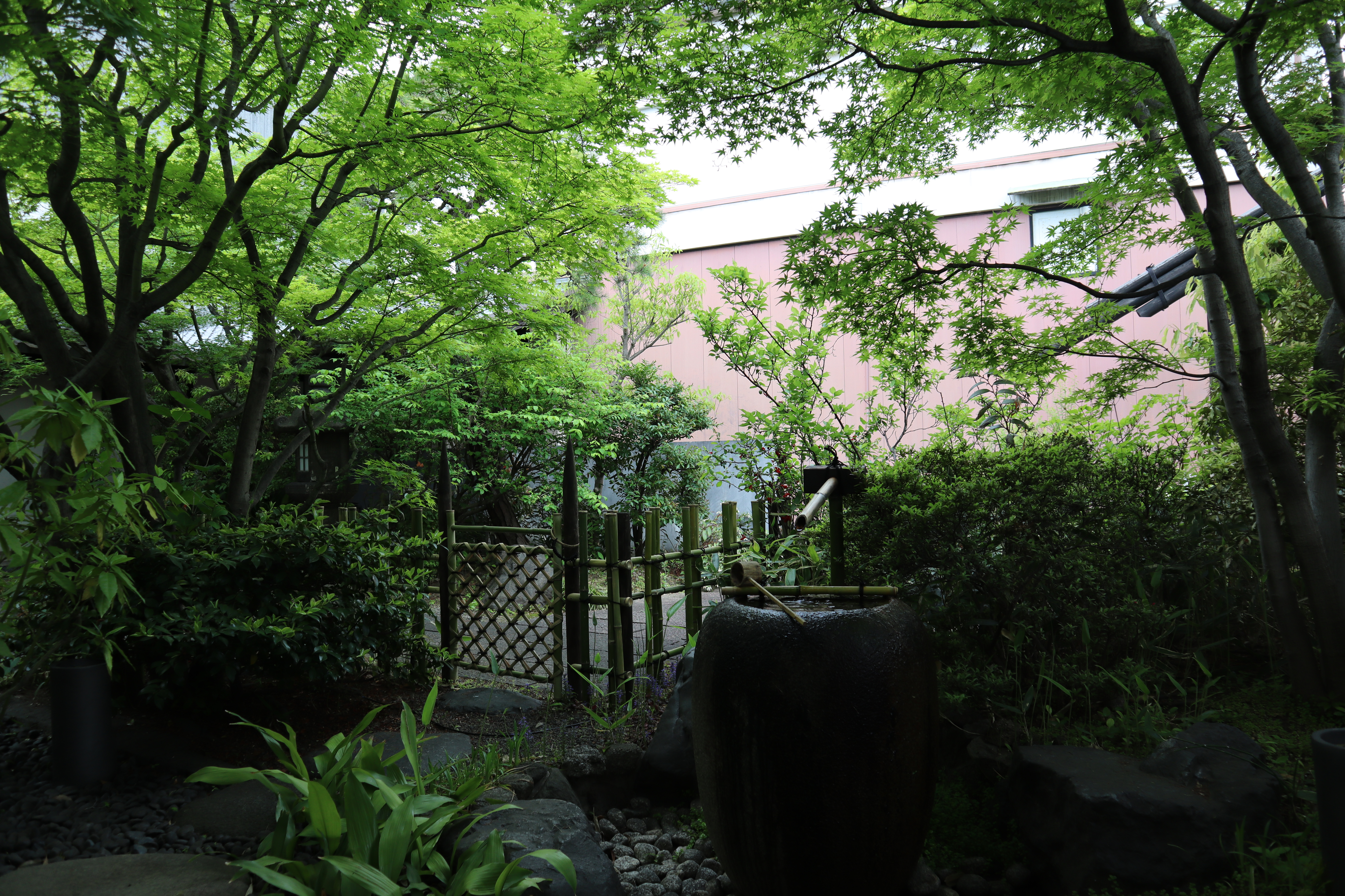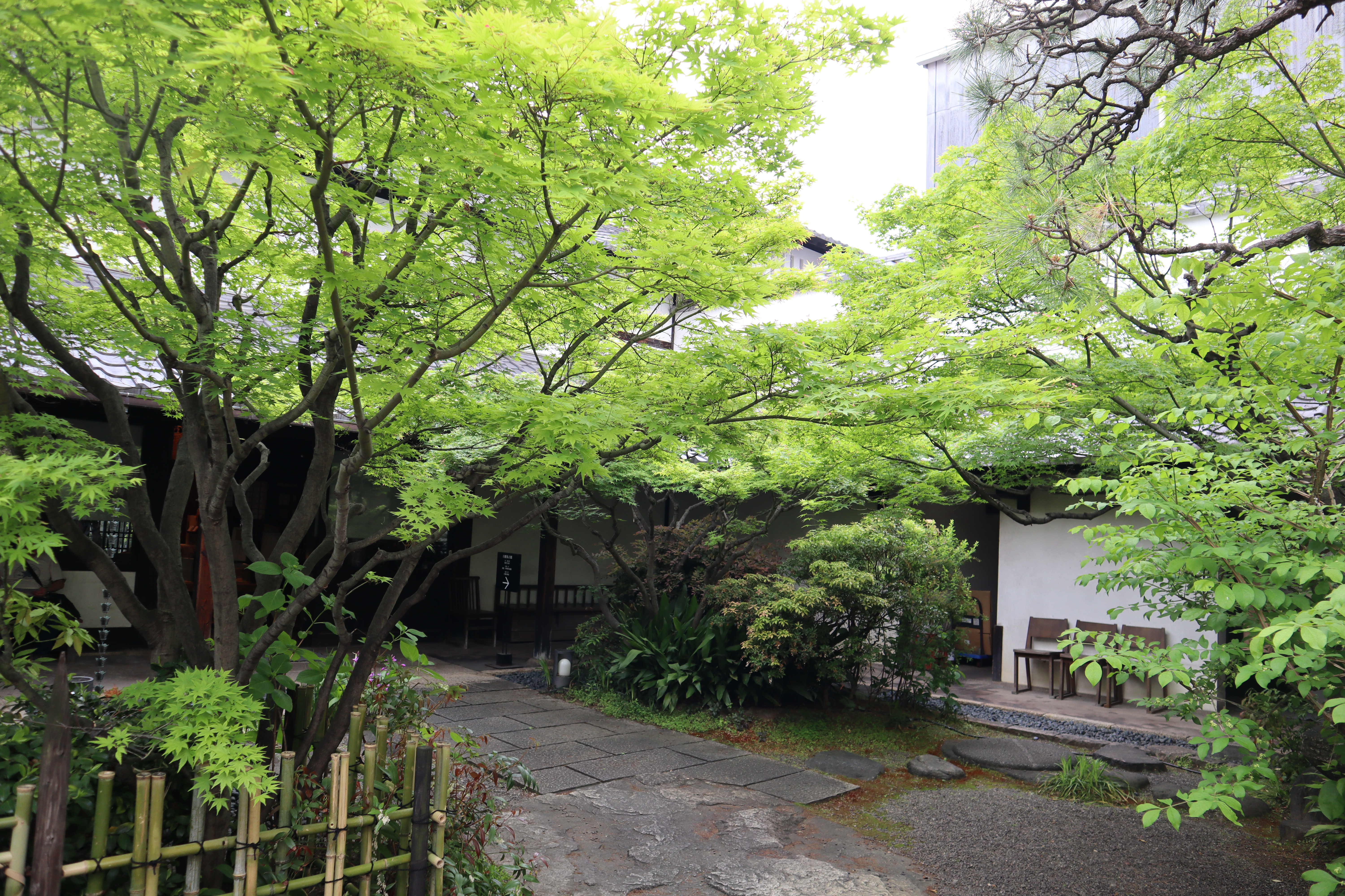 淡い春の色から新緑が目立ち始めるこの季節、禄水苑中庭の木々も日ごとに青さを増してきました。